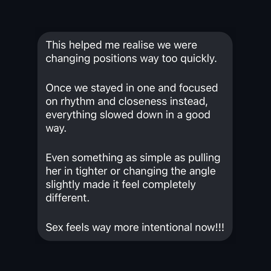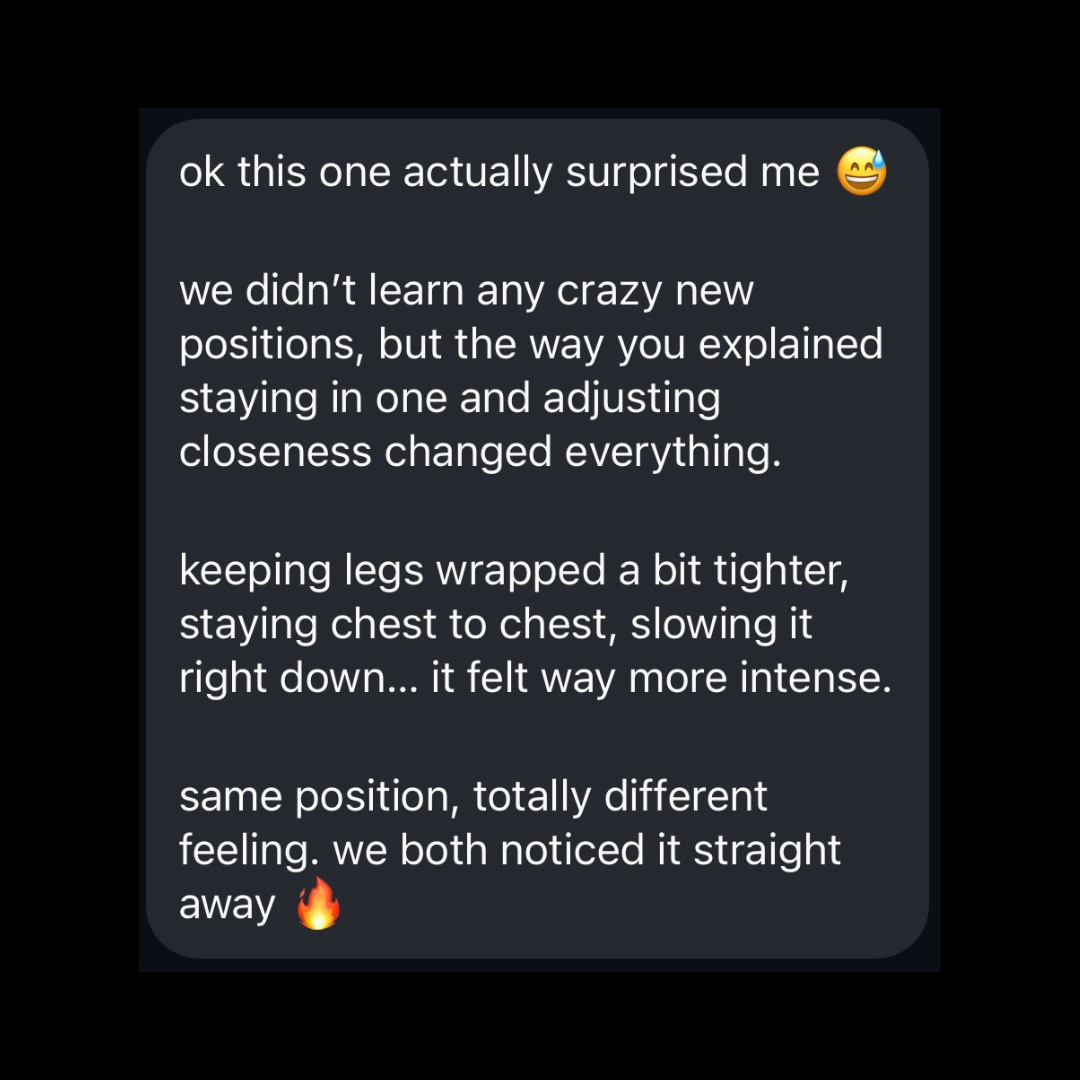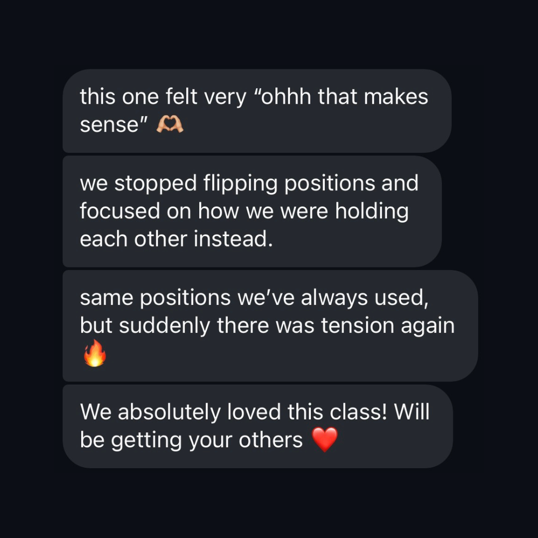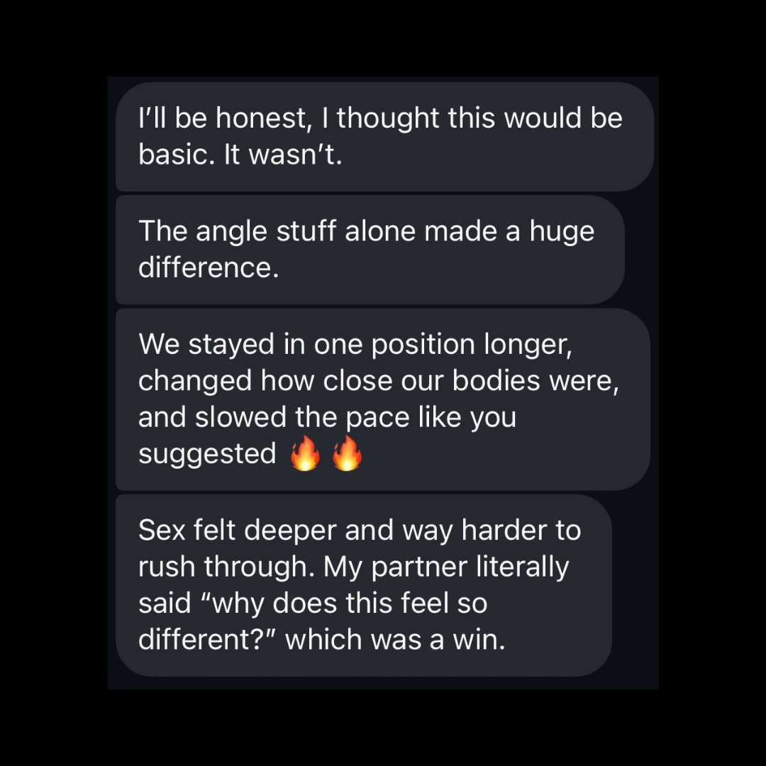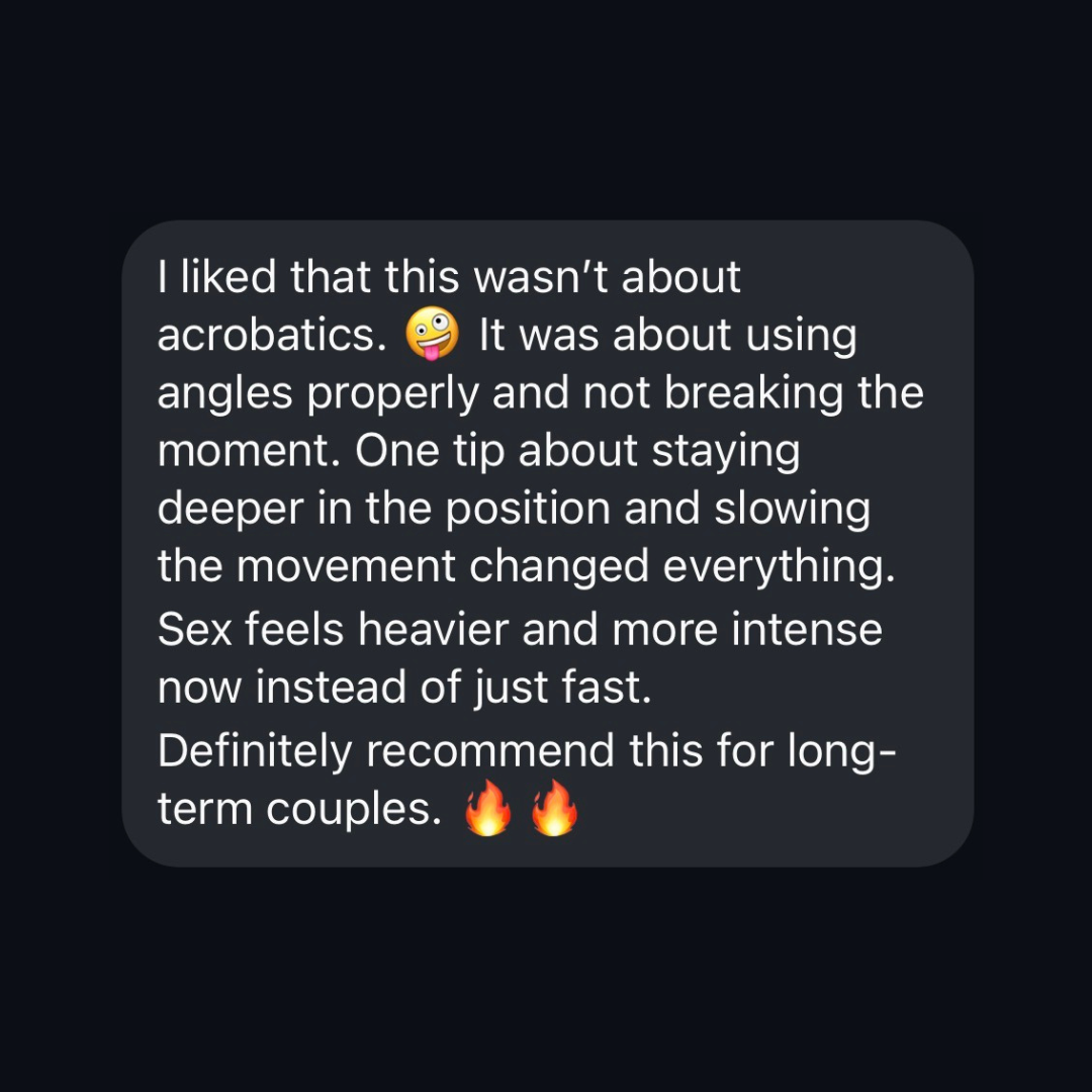 When you apply what’s in this masterclass, sex shifts from “yeah, that was good” to the kind that leaves you breathless, sweaty, and fully locked into each other.