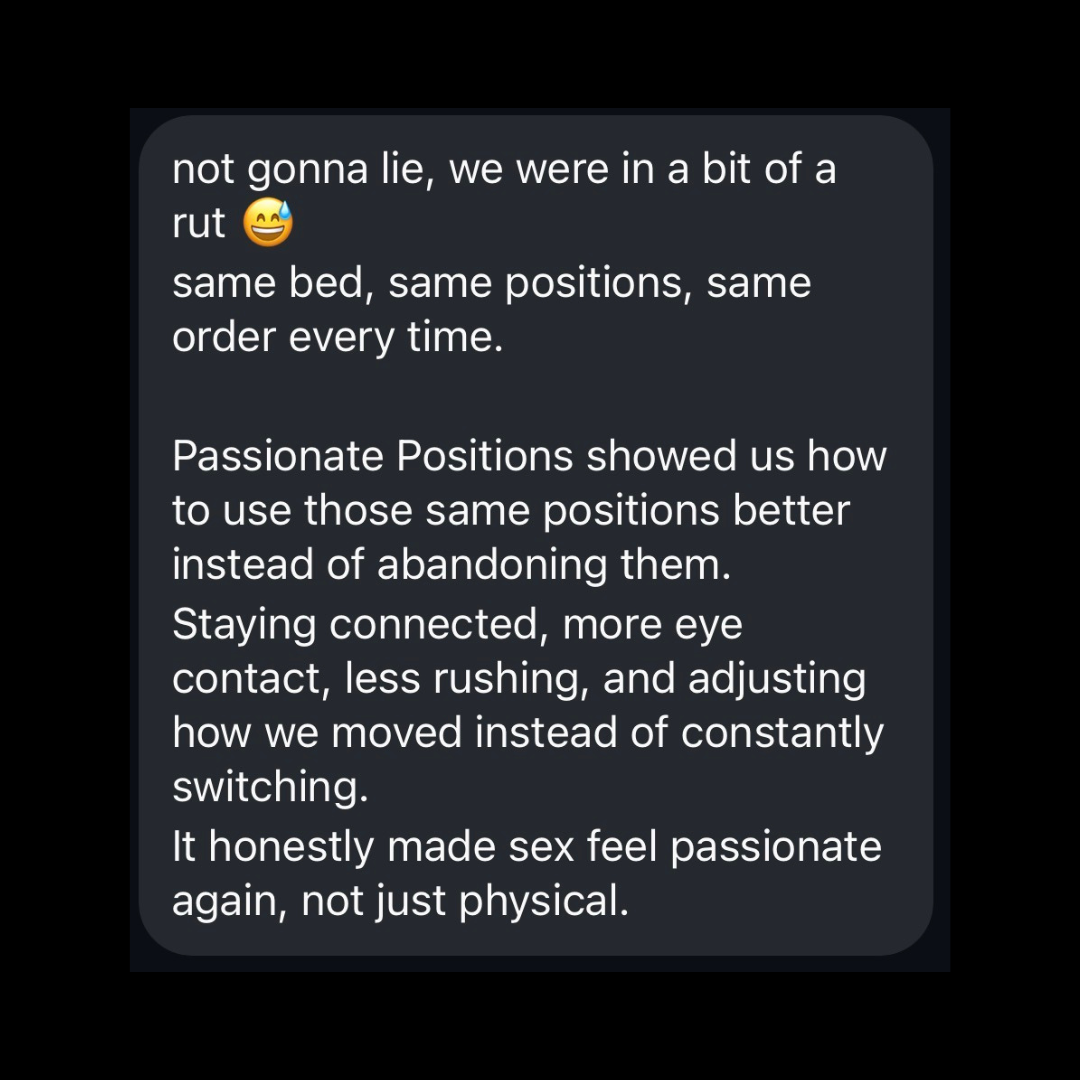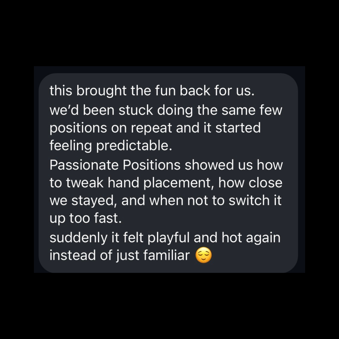 If you want sex to feel passionate, physical, and impossible to phone in, Passionate Positions is how you get there.